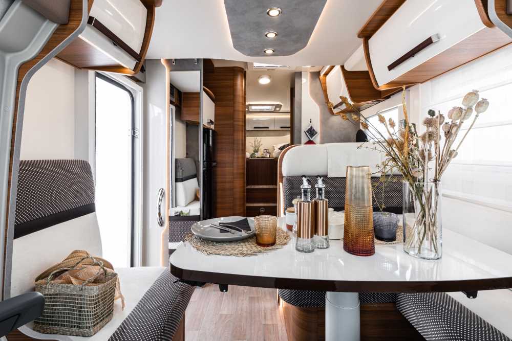 Het design van de Baron modellen kenmerkt zich voor wat de buitenzijde betreft door heldere kleuren en mooie lijnen. In het stijlvolle interieur zorgt de warme houtkleur in combinatie met witte deuren voor een luxe uitstraling. Er is keuze uit 3 stofferingen waarbij wij de meeste campers inkopen met een luxe ecolederen stoffering.