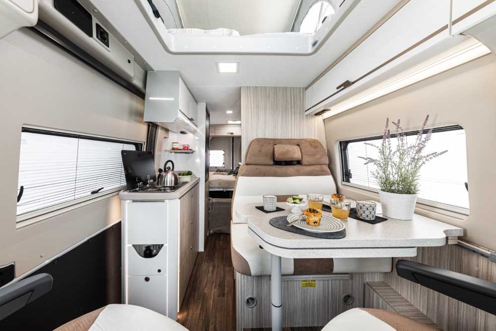 De Elnagh E-Van is de serie compacte buscampers van dit Italiaanse A-merk. Keuze uit 3 lengtes: 5,41, 5,99 en 6,36 meter, van korte Elnagh E-Van K2 tot de Elnagh E-Van Duo XL met een 2-persoons hefbed achterin de camper. Een aantal modellen is leverbaar met een hefdak en daardoor een tweede bed op het dak.